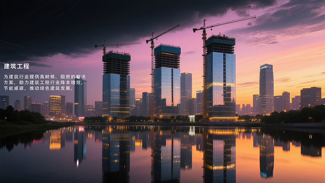 为建筑行业提供高耐候、阻燃的解决方案,助力建筑工程行业降本增效,节能减碳,推动绿色建筑发展。